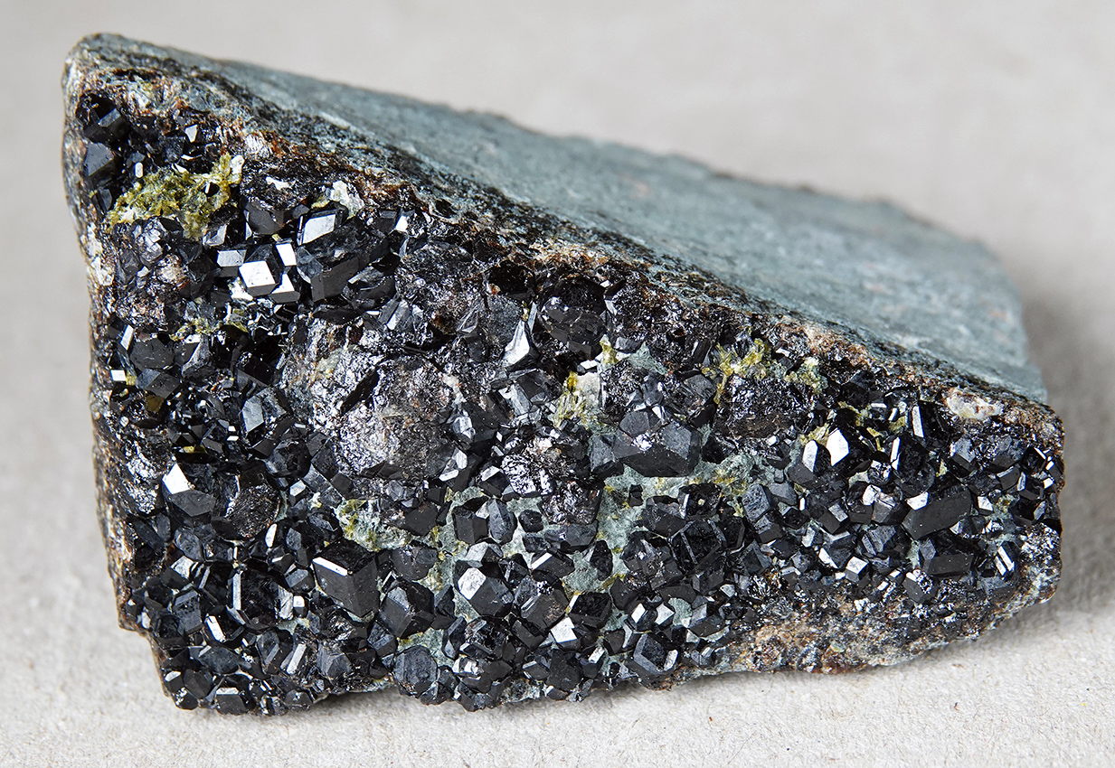 Grenat andradite (variété mélanite) avec un peu d’épidote que gangue.