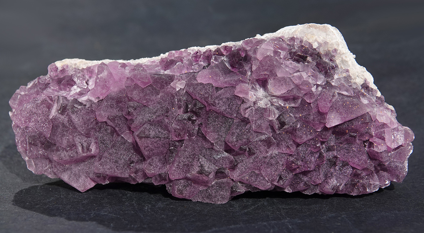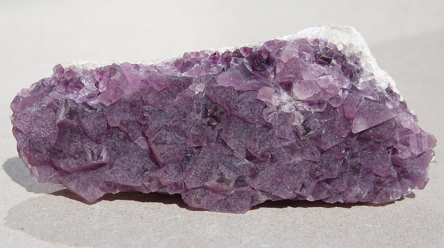 Fluorine octaédrique mauve à aspect givré sur gangue.