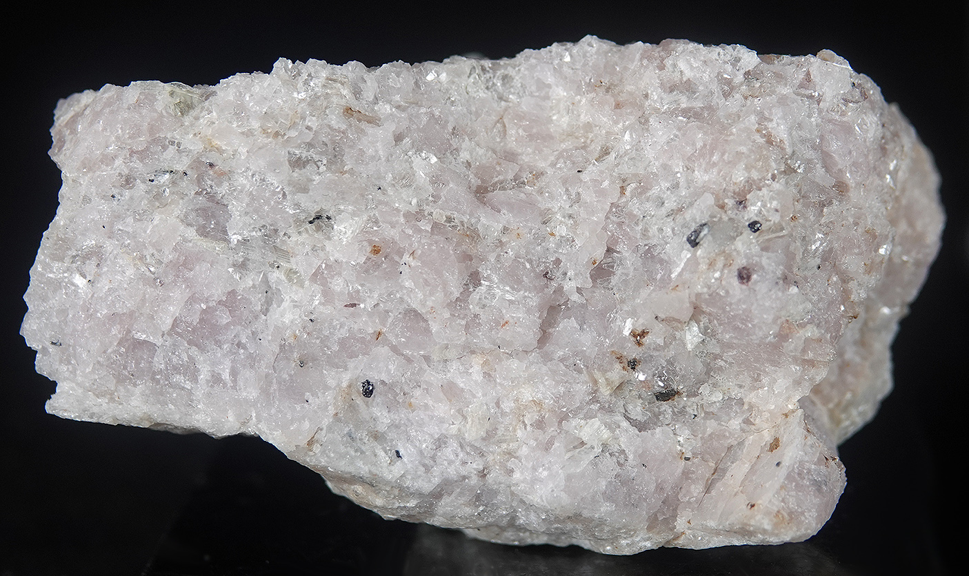 Association de pyrope rose pâle, d’ellenbergite violacée, de rutile noir, de quartz incolore et de lamelles de muscovite incolores. Présence d’une minéral jaunâtre non identifié.