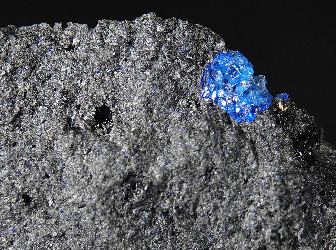Cristaux d’haüyne de couleur intense dans une phonolite riche en microcristaux d’haüyne.
