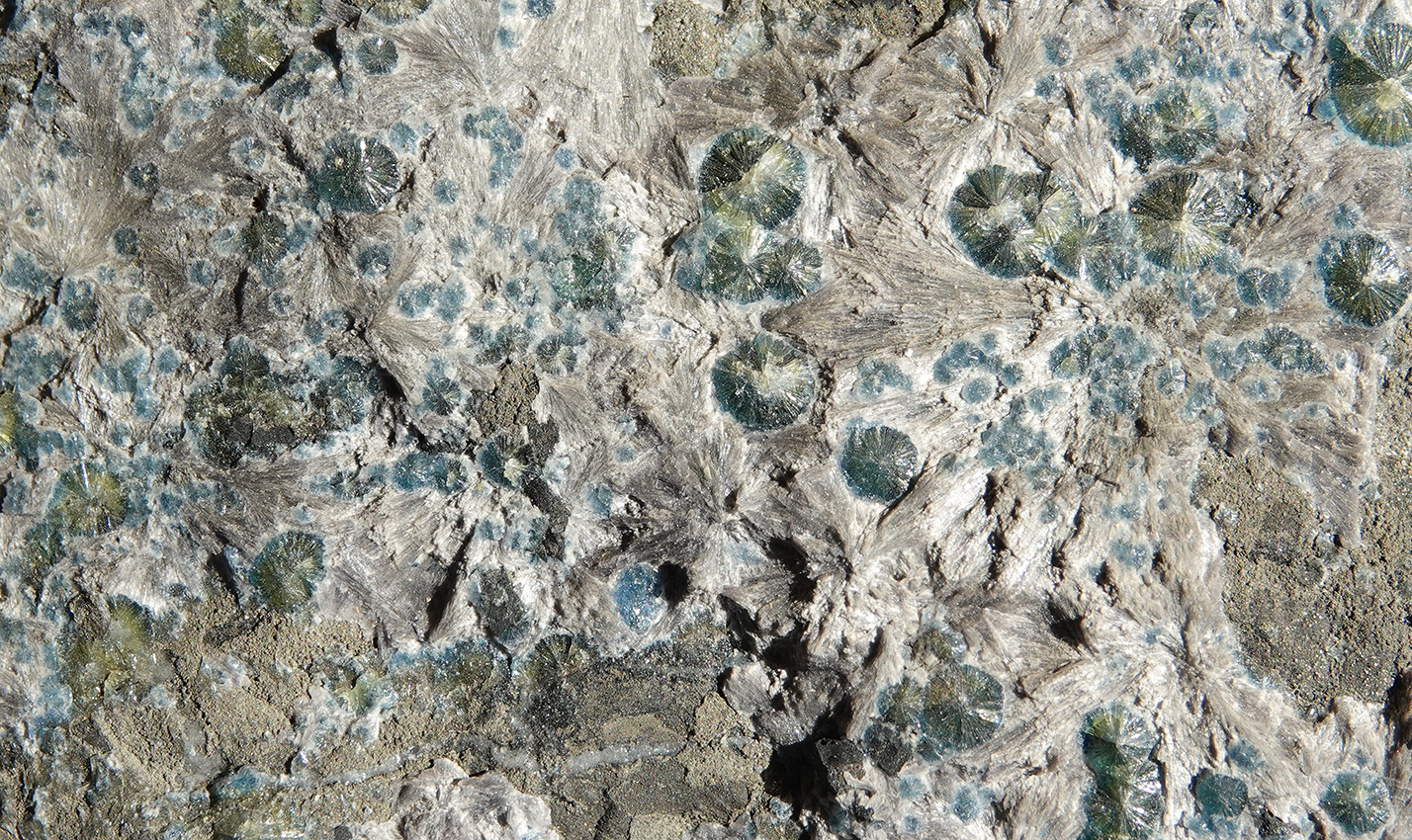 Cristaux allongés d’haüyne à croissance parallèle dans une phonolite riche en microcristaux d’haüyne isométriques.